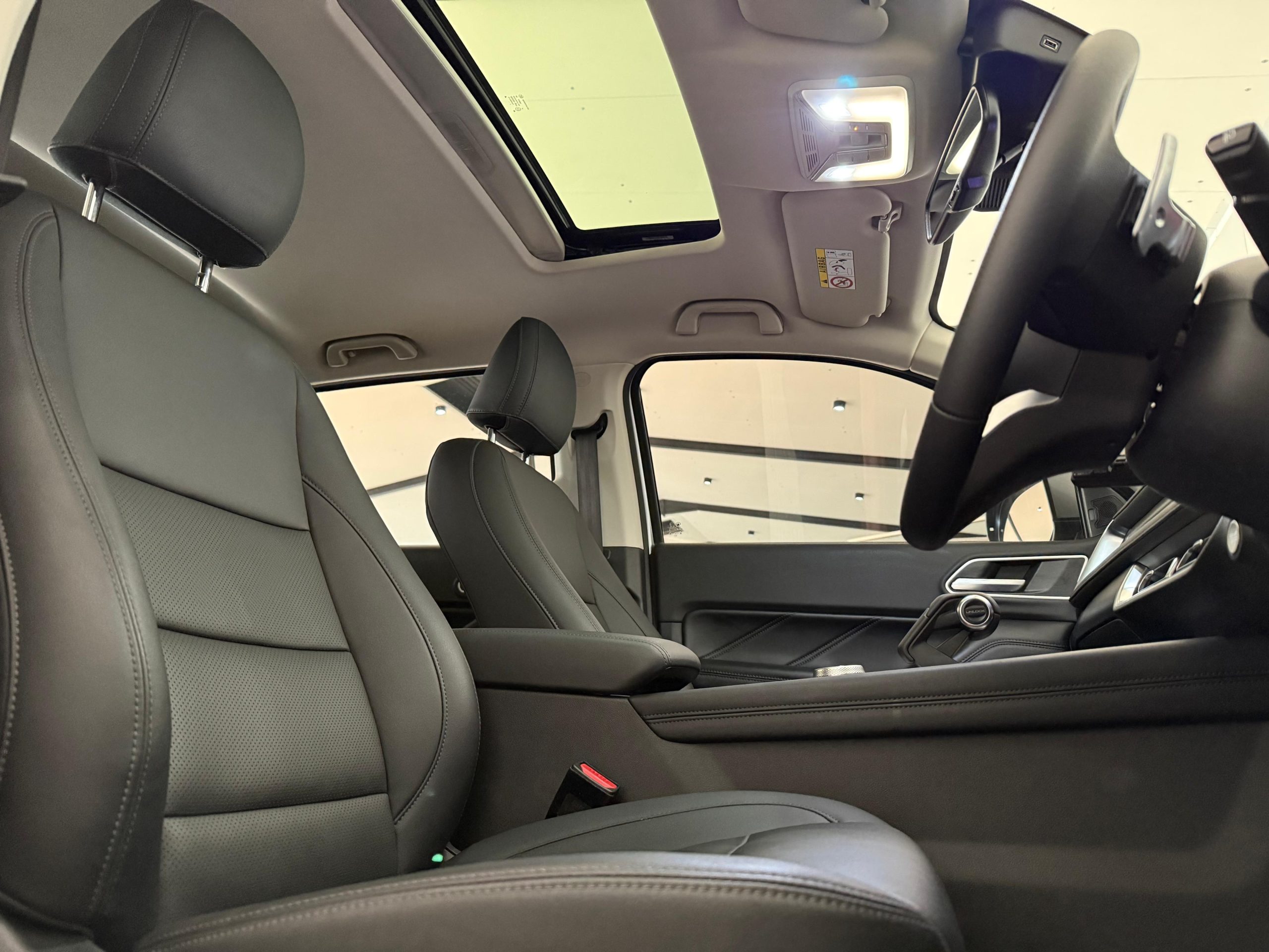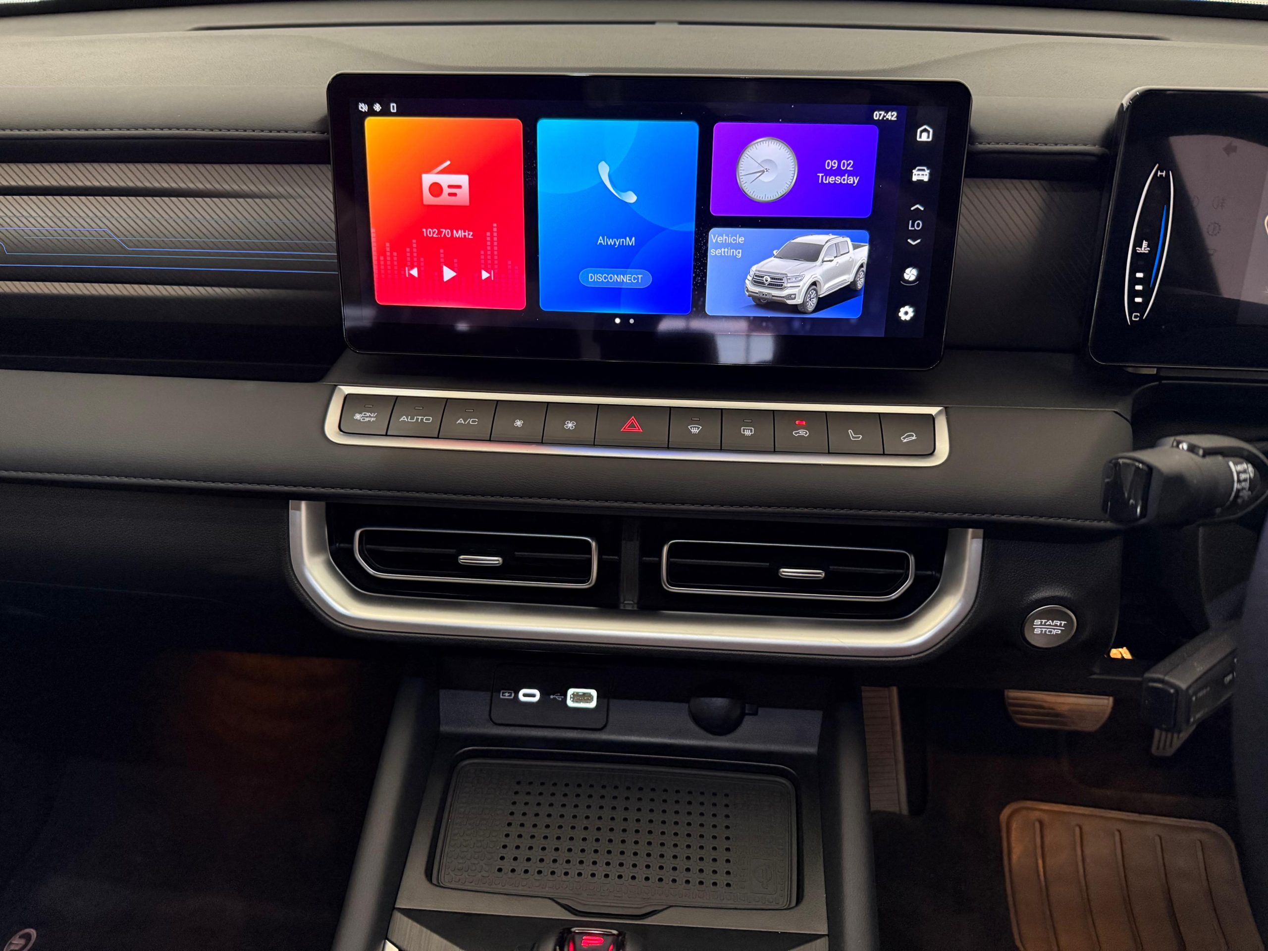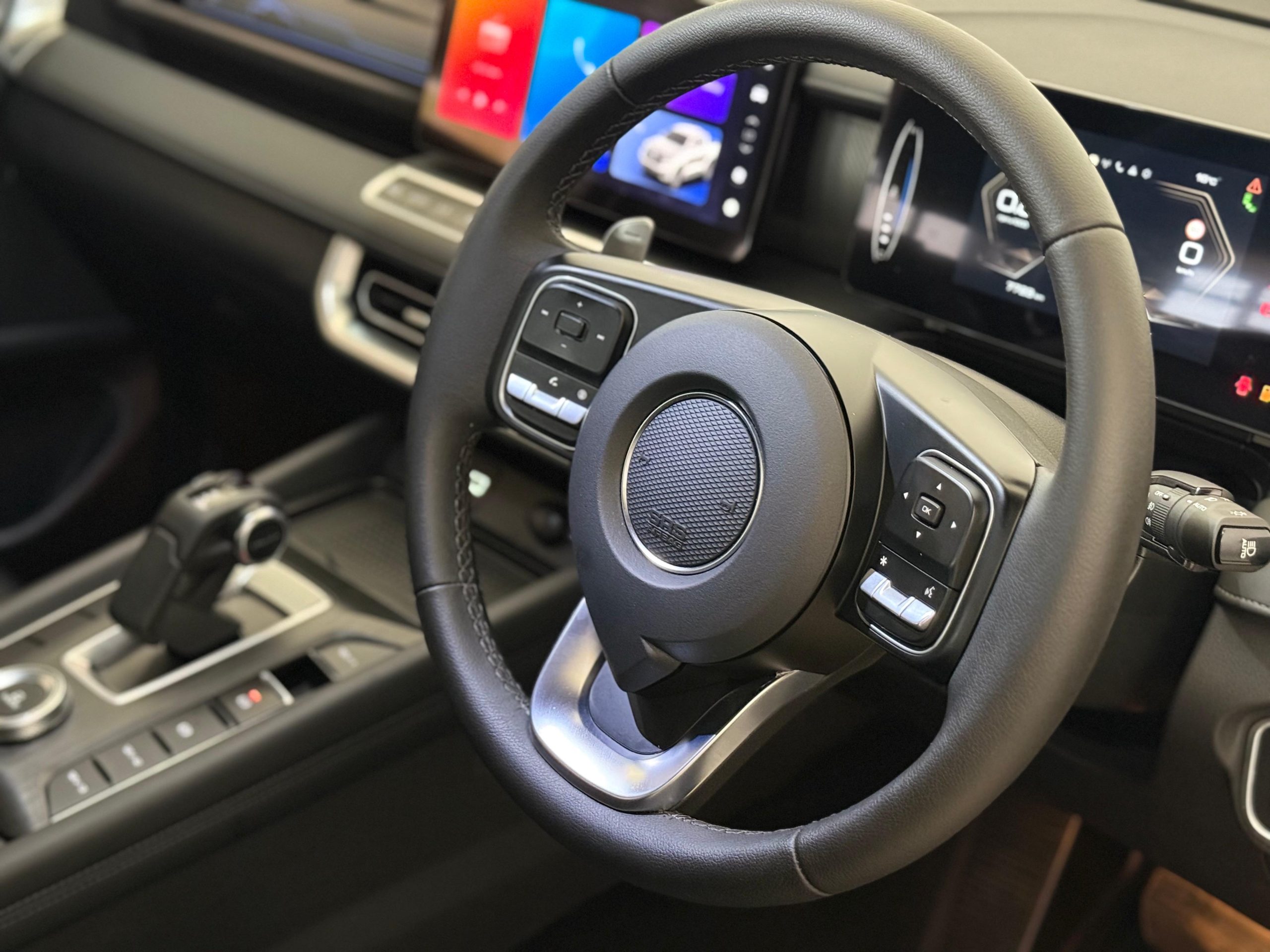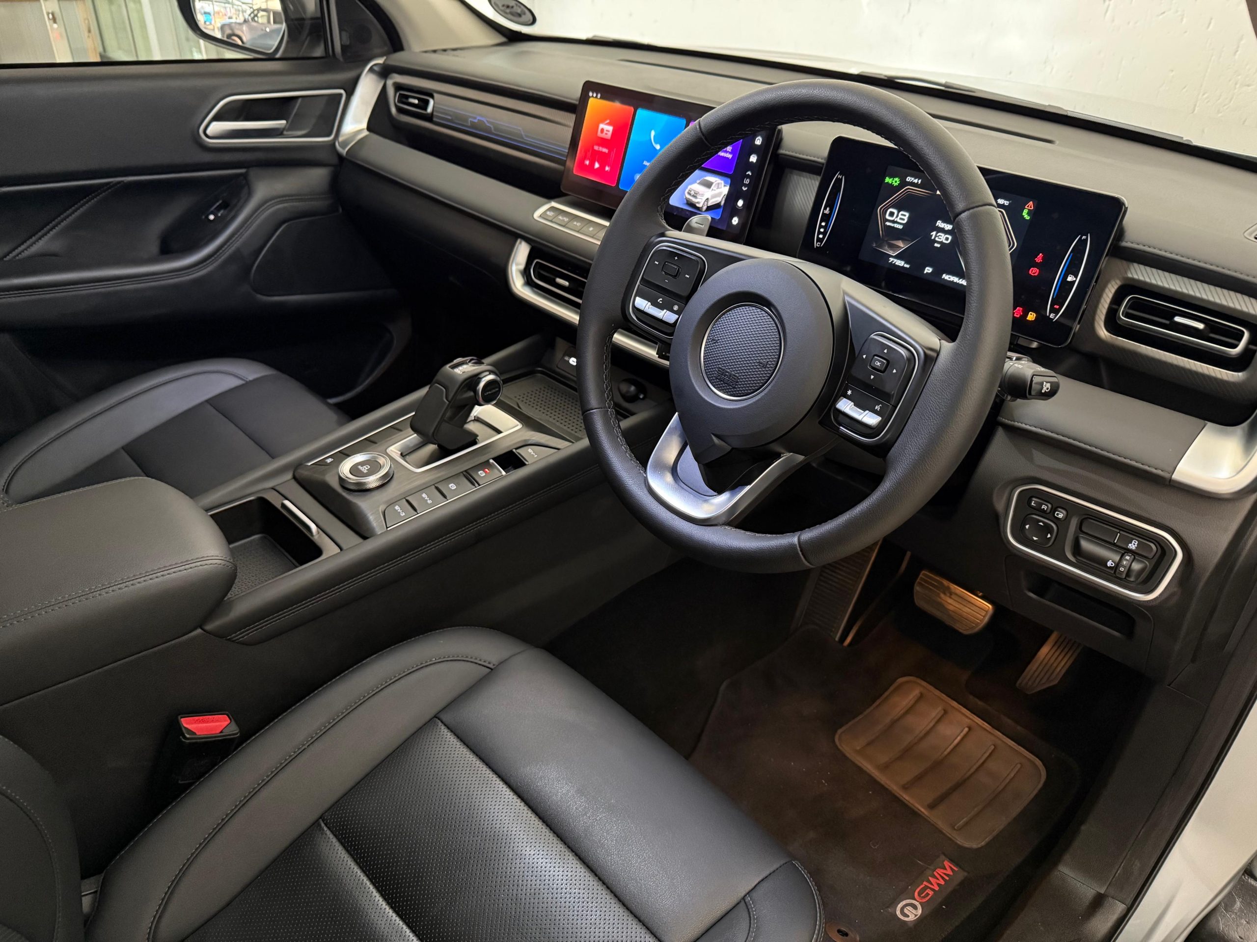 The GWM P300 is equipped with a range of features including a leather steering wheel, paddle gear shifters, and an electronic gear shifter. It also boasts features like auto hold, an auto-dimming rearview mirror, and auto air conditioning. Other interior highlights include leather seats, electrically adjustable front seats (with heating), a wireless charger, keyless entry, smart key functionality, and voice recognition. Exterior features include a tailgate step and a sunroof. The P300 also incorporates intelligent driving systems such as adaptive cruise control, rear parking sensors, lane departure warning, lane change assist, and driver fatigue monitoring. It also features blind spot detection, auto emergency braking, front and rear collision warnings, and a 360-degree panoramic view camera. • Safety: The P300 has a comprehensive suite of safety features including lane keep assist, lane departure warning, traffic sign recognition, and various collision avoidance systems. It also includes airbag protection. • Off-Road Capabilities: The P300 LTD, the flagship off-road model, includes features like an electronically controlled rear differential lock, front winch, snorkel, added underbody protection, and front-seat ventilation. • Technology: The P300 offers a 12.3-inch touchscreen display, Apple CarPlay and Android Auto compatibility, and a 360-degree panoramic view camera. • Engine: The P300 is powered by a 2.4-liter turbo diesel engine producing 135kW and 480Nm of torque,